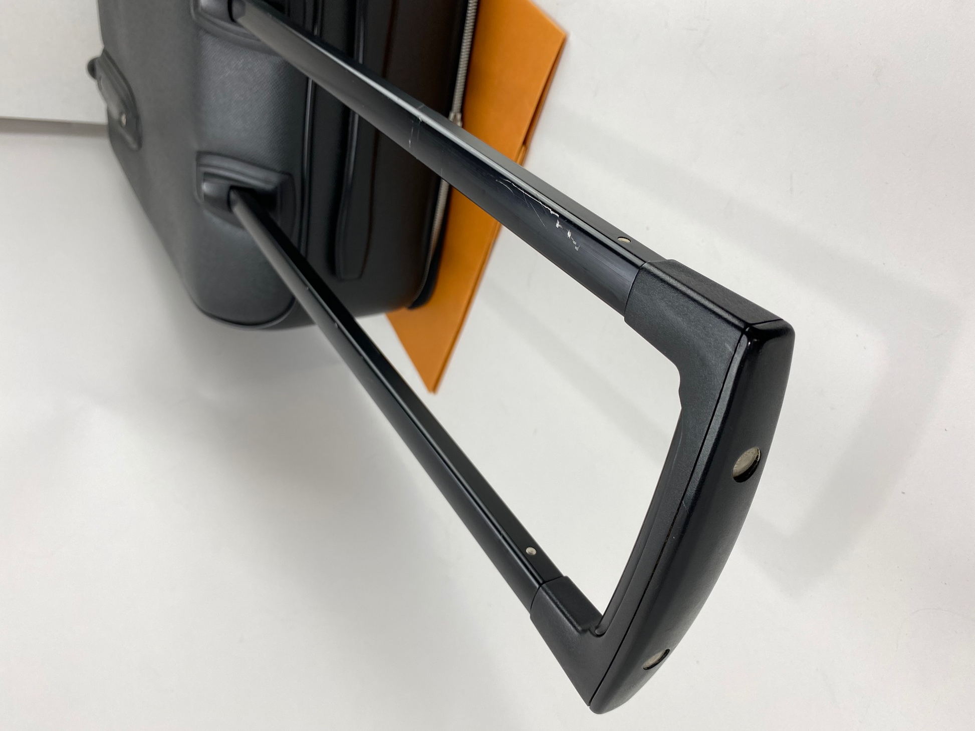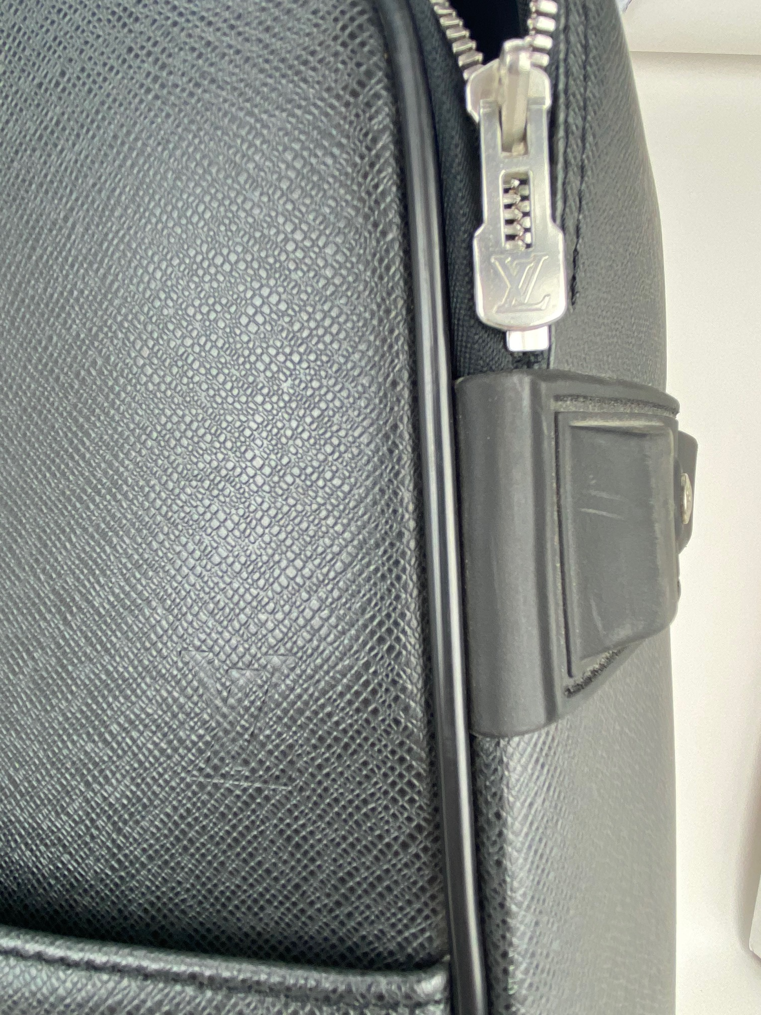 Hit the road in style with this Louis Vuitton Pegase 60 in sophisticated Ardoise Taiga leather! This B-rated roller is a seasoned traveler with authentic character marks that tell stories of adventures past. The durable black Taiga leather exterior shows scuff marks on handles and side accents, while the smooth-rolling wheels and sturdy telescoping metal handle keep things moving. The spacious 22" x 14.5" x 7.5" interior is clean and ready for your next journey, featuring practical velcro-secured textile lining and an interior pocket. Silver hardware adds polish throughout. Sure,