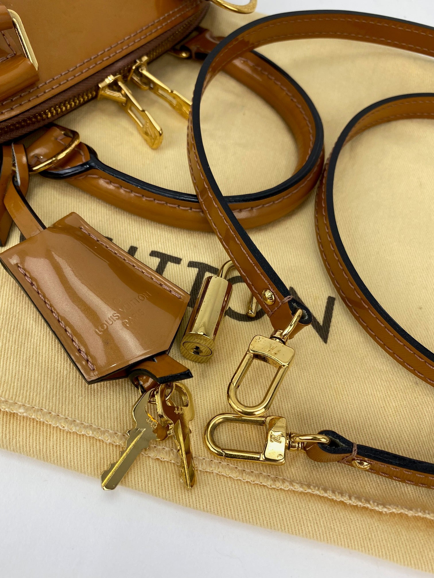 Fall in love with this Louis Vuitton Alma BB in stunning Rose Velours vernis leather—a compact powerhouse that's pure luxury! This B-rated beauty is well-maintained with only minor wear except for some black marks on the back that add authentic character. The gorgeous rose velours hue (with orangish-tan undertones) gleams in monogram vernis leather, while sturdy double vernis leather handles (4" drop) keep everything secure. The pristine mint interior measures a perfectly portable 7" x 9.5" x 4.5". Golden hardware shines throughout. You're getting the full VIP treatment: LV dust bag, 44" vernis leather strap for crossbody styling, lock with two keys, removable bell-shaped key holder, and booklet. This timeless piece ships same day or next via USPS or FedEx. Pure elegance!